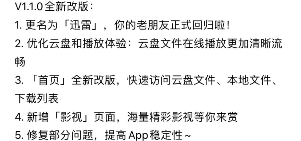 (App Store截图,迅雷 V1.1.0 更新内容)