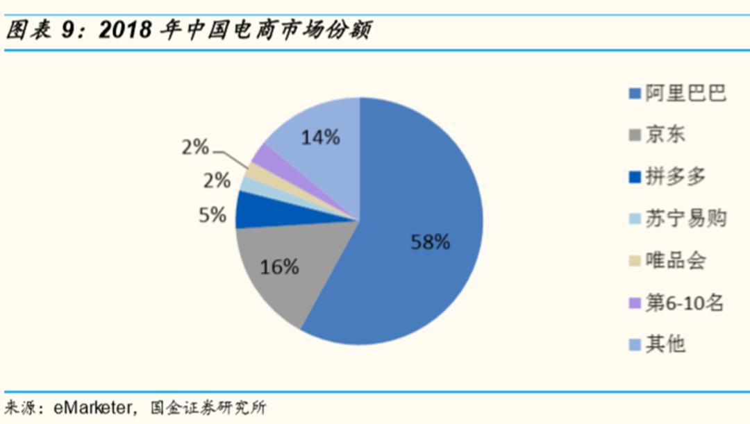 我还找了份中金公司2019年的统计数据做参考,对比了一下国内的平台电商。