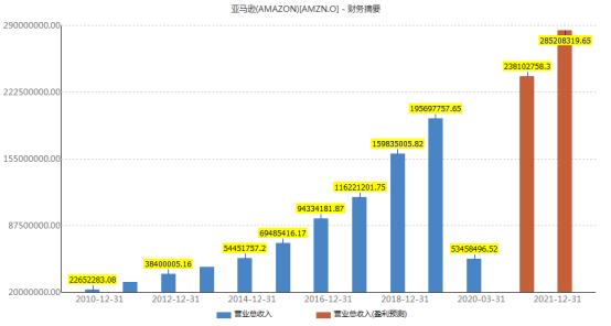 当然,除了在电商领域坐稳大佬地位,亚马逊在云计算领域上也不甘落后,受到疫情时期,人们在线远程办公的渗透度不断加速的影响,其云服务的需求明显增加,继续为其业绩提供动力。