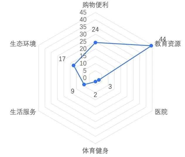教育资源配套重要地位突出:通过访谈提取购物便利(综合商场/超市/市场)、生活服务(餐饮/沿街商店/银行/便民)、教育资源(幼儿园/小学/初中/高中)、医院、体育健身、生态公园等6种配套类型,请受访换房客进行重要性比重赋分。结果显示,教育资源以44分居于首位。受访换房客在进行房屋置换时,6岁以下同住子女占比80.2%。由于教育资源捆绑住房,换房决策中教育资源的重要地位凸显。
