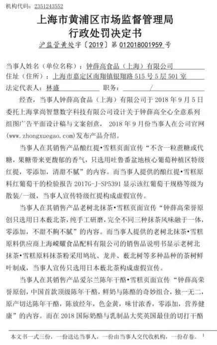 但最打脸的是,2019年上海黄埔区的一个处罚让钟薛高现出原形。钟薛高在被罗永浩直播带货后,被扒曾经因为虚假宣传受到过上海市黄浦区行政处罚,其宣传的原材料均非所宣传的等级。