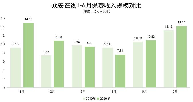 众安在线公告显示,2020年1月1日至6月30日,众安在线获得的原保险保费收入总额约67.63亿元,相较去年同期的59.01亿元增长14.6%。
