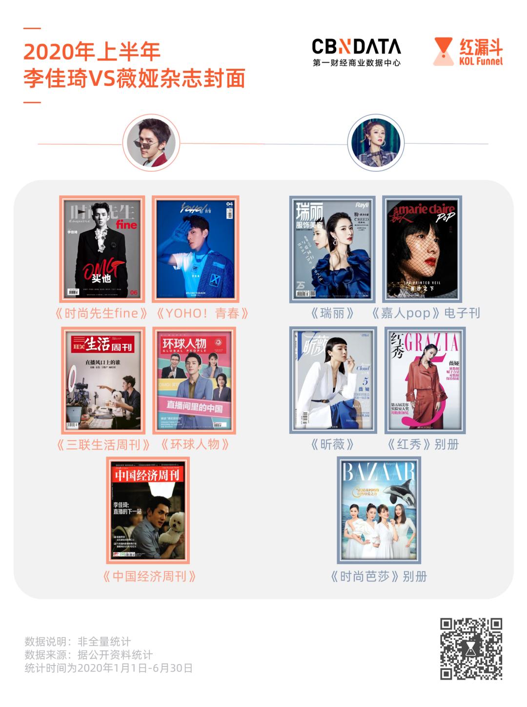 据不完全统计,李佳琦和薇娅在数量上平分秋色,各自拥有5个杂志封面资源。