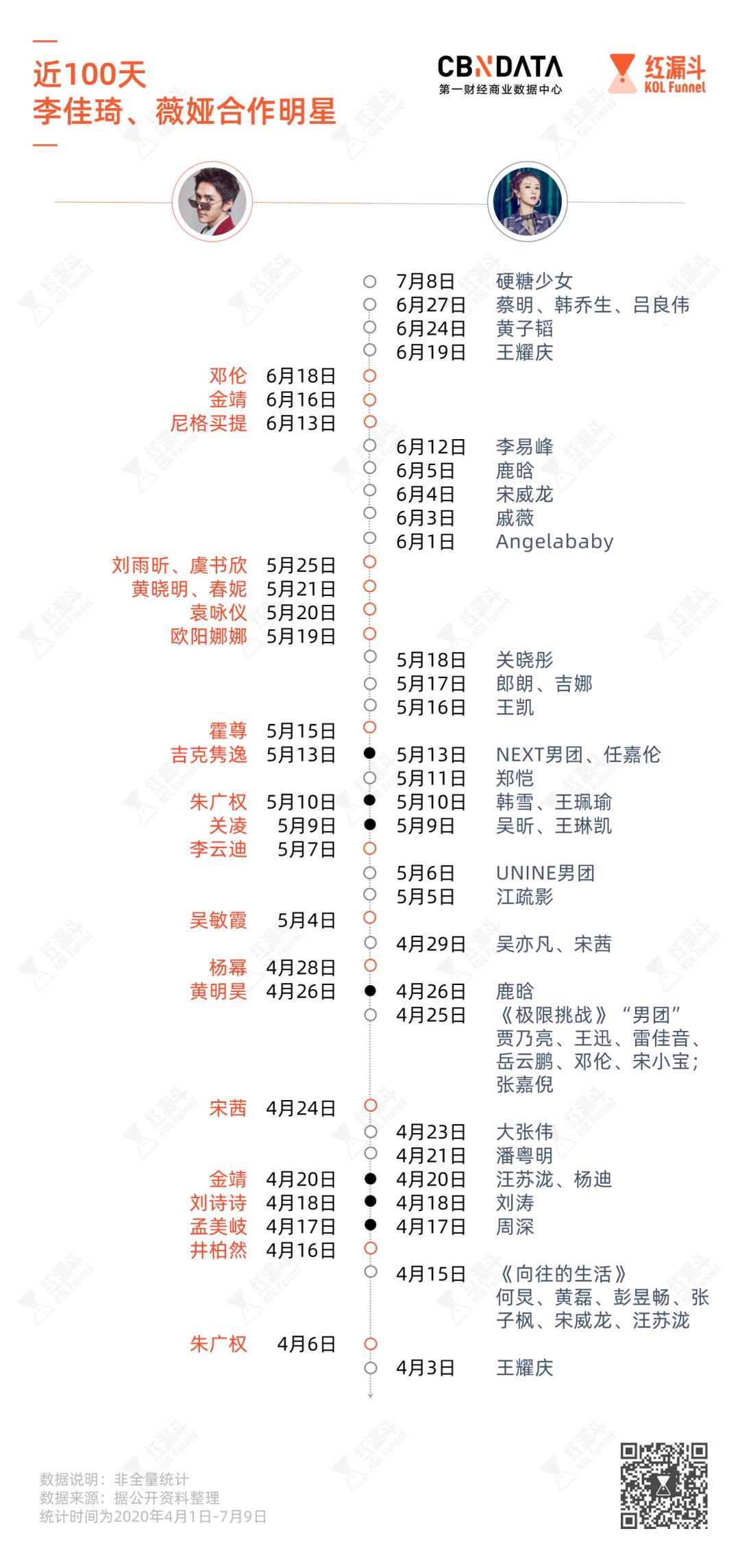 首先来看他们直播间合作过的明星。仅统计最近100天,两人合作的单人明星、团体数量已经超过70个。