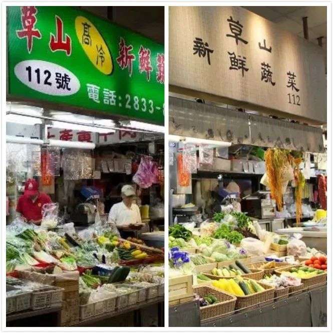 2017年台湾30多位设计师爆改士东菜市场是网红化的开始,从店招到配色,从塑料菜筐到原色木盒,外加精心走线的灯光设计,妥妥的日系清新风。