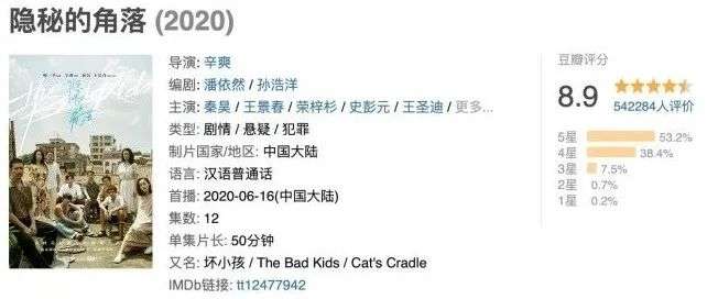 看过《隐秘的角落》的人,对上面的段子应该不陌生。在电影持续缺席的日子里,《隐秘的角落》火爆了大半个六月。如今这部作品在豆瓣有54.2万人点评,评分高达8.9分,可谓近年网剧“名利双收”的佼佼者。
