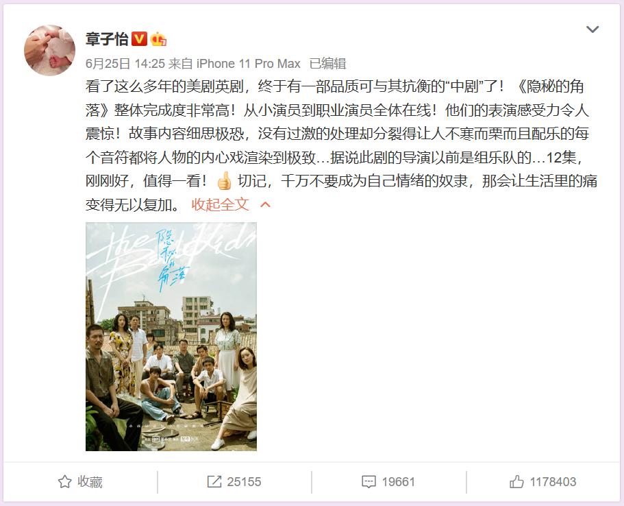 章子怡的推荐词,道出了该剧成功的巨大秘密。“看了这么多年的美剧英剧,终于有一部品质可与其抗衡的‘中剧’了!《隐秘的角落》整体完成度非常高、演员的表演感受力令人震惊,值得一看。”如她所言,美剧的确有广阔的受众群体和较长时间的受众培养,这一点从《权游》的火爆就可略窥一二。在美剧、欧美电影都青黄不接的时候,该剧给这些人来了点“心理滋养”,这算是这个剧的“天时”。