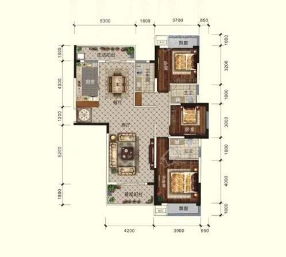 89平做2房,120平只做3房,甚至150平只做3个房间,但是有3个卫生间。