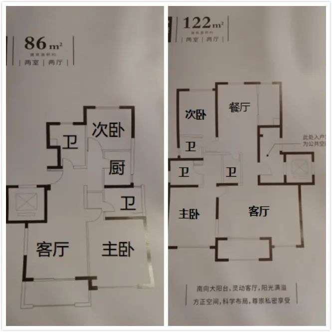 这个86平两房两卫和122平两房三卫,算的上是年度最让人难以看懂的户型之一了吧。