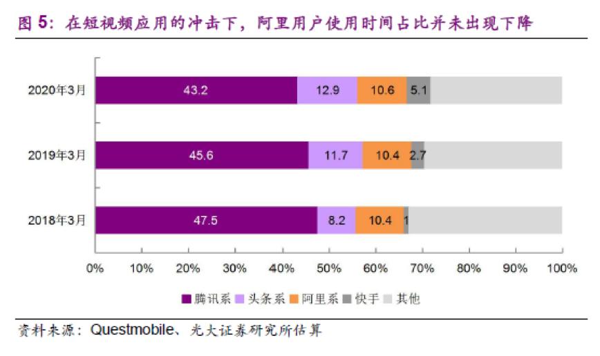 对于市场所担心的字节与快手的崛起严重威胁了阿里的流量获取能力。光大证券认为,阿里从来就不是互联网行业的流量生产源头,而是最高效的流量变现器。字节与快手的崛起抢占的是腾讯所占据的用户时间,而用户时间及注意力从腾讯转向字节/快手,更有利于阿里对上游流量的承接与变现。