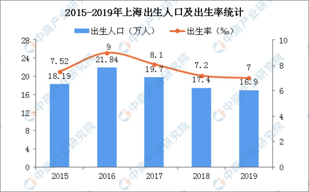 2019年上海常住人口出生量仅为16.9万人,较2018年减少0.5万人。出生率为7.0%,从2016年开始逐年走低。2019年上海死亡13.3万人,死亡率为5.5%,从图中可以明显看出上海的新增人口数量很少。