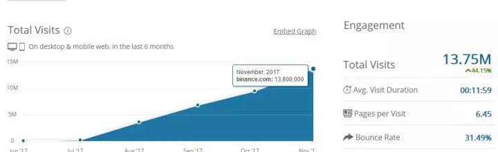 (币安流量在 2017 年 8-11 月增长迅猛,图片来自知乎WEISI)