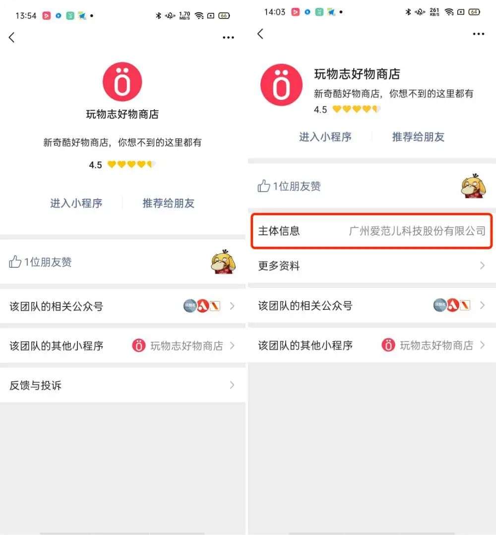 答案是点击右上角「...」,再点击「更多资料」就能看到这个小程序的开发者信息。这个路径对于普通用户来说实在是过长了,所以最好的办法就是将小程序主体公司、组织直接在主页上显示,能有效避免不少山寨品牌扯虎皮坑蒙拐骗。