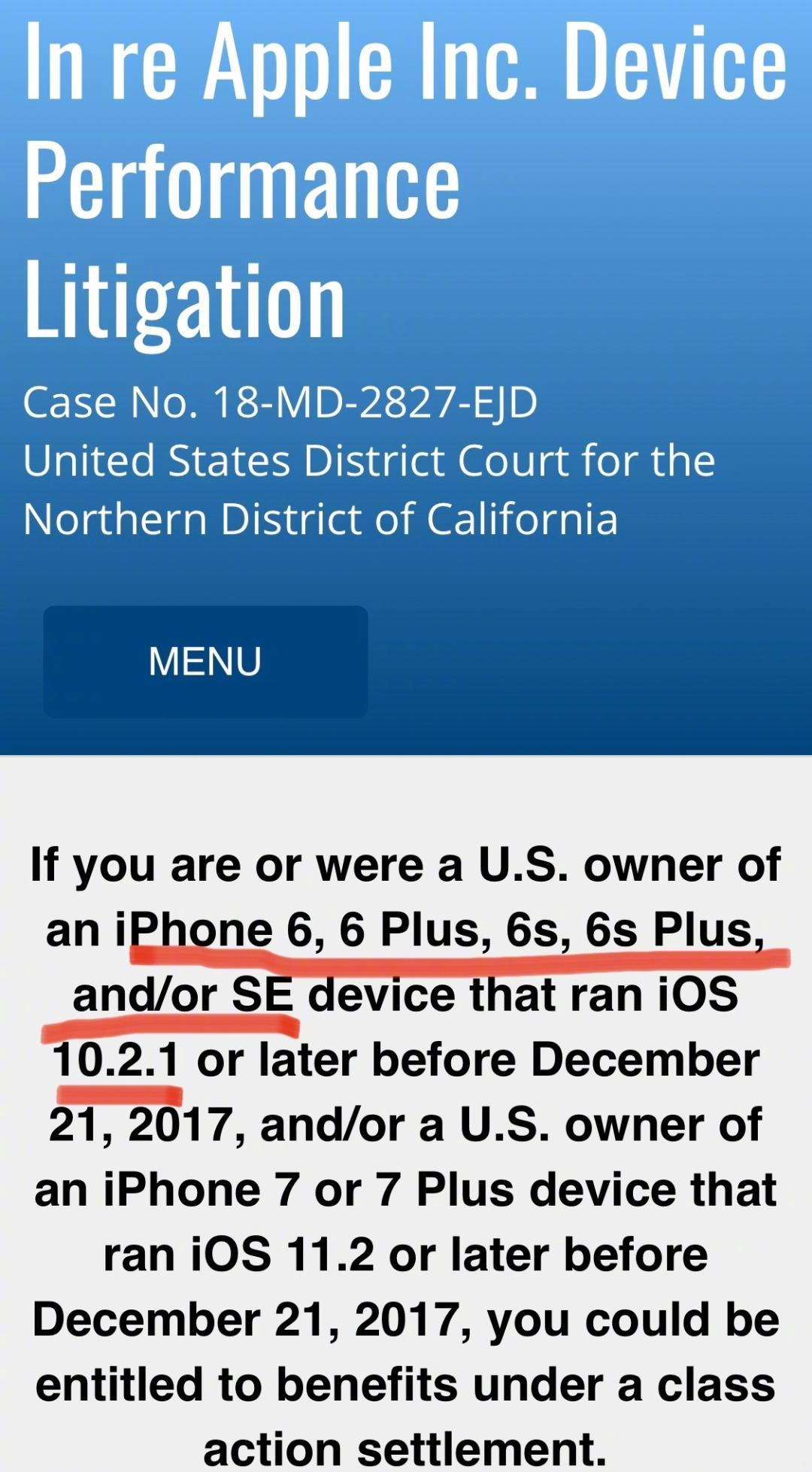 目前仅限在2017年12月前使用iPhone 6,6 plus,6s,6s plus等型号手机并受到影响的美国用户申请。