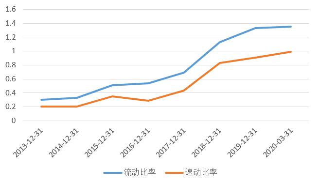 2016年以来,同庆楼的流动比率和速动比率显著提高,2019年流动比率首次超过行业平均达到1.35(行业平均1.19),2020年3月速动比率首次超过行业平均达到0.99(行业平均0.97)企业短期偿债能力在不断优化。