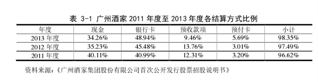 在支付宝、微信等支付平台、各银行快捷支付等第三方支付方式兴起之前,中国餐饮业消费结算的主要形式以现金、信用卡、预收账款或预付卡为主。其中,个人客户多使用现金、信用卡、预付卡结算,团体客户多使用信用卡、预收款项结算。