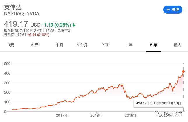 说英伟达是AI时代的最大赢家,应该没有人会反对,资本大佬们对此更是举双手双脚投票赞成。要知道在2015年6月,英伟达的股价只有19美元。而5年之后的今天,股价就已经飙升到400美元以上,涨幅超过20倍。
