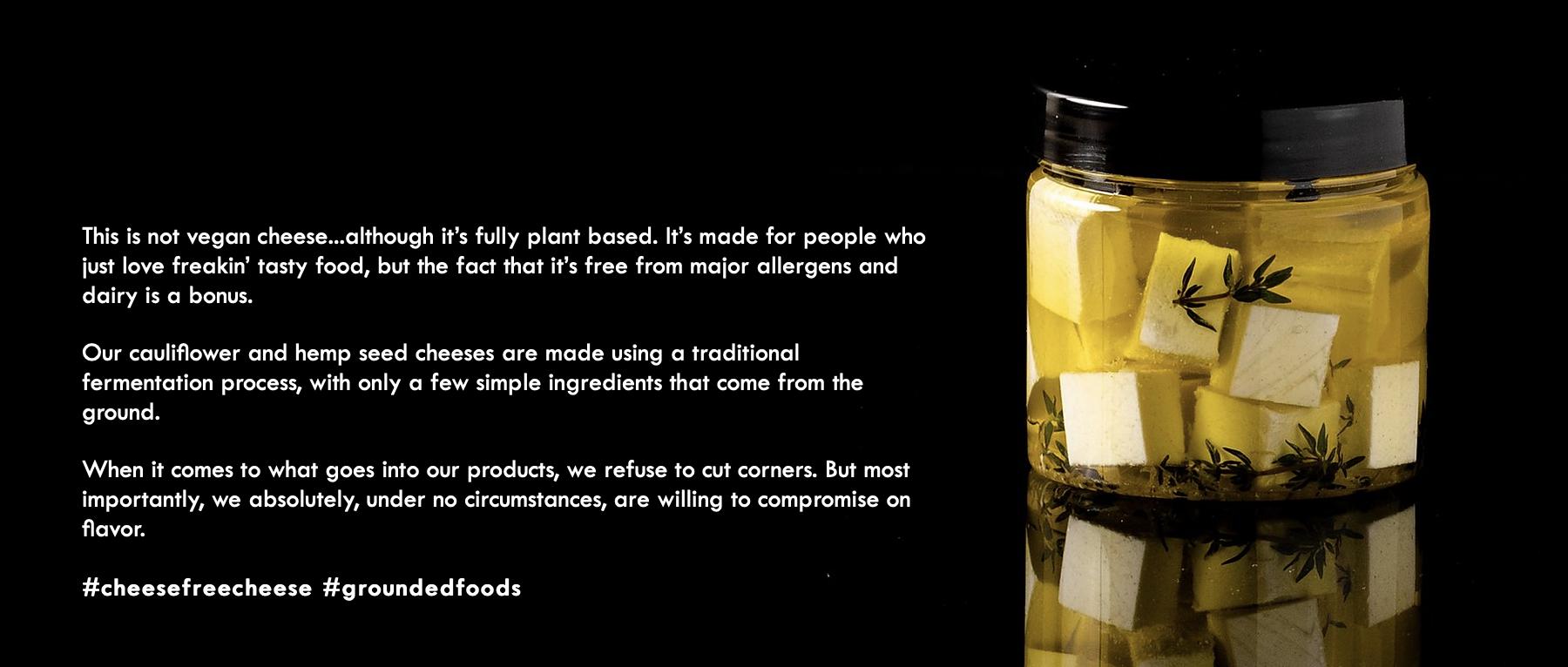 「Grounded Foods」利用发酵的花椰菜和大麻籽,生产制造了一系列较为优质的植物性奶酪,这些产品中不含坚果、大豆、麸质、转基因生物、棕榈油,以及奶制品。