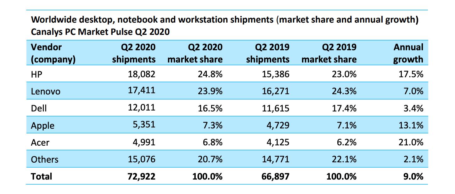故而,在海外疫情肆虐的二季度,全球PC市场反而出现了逆市上扬的局面。
