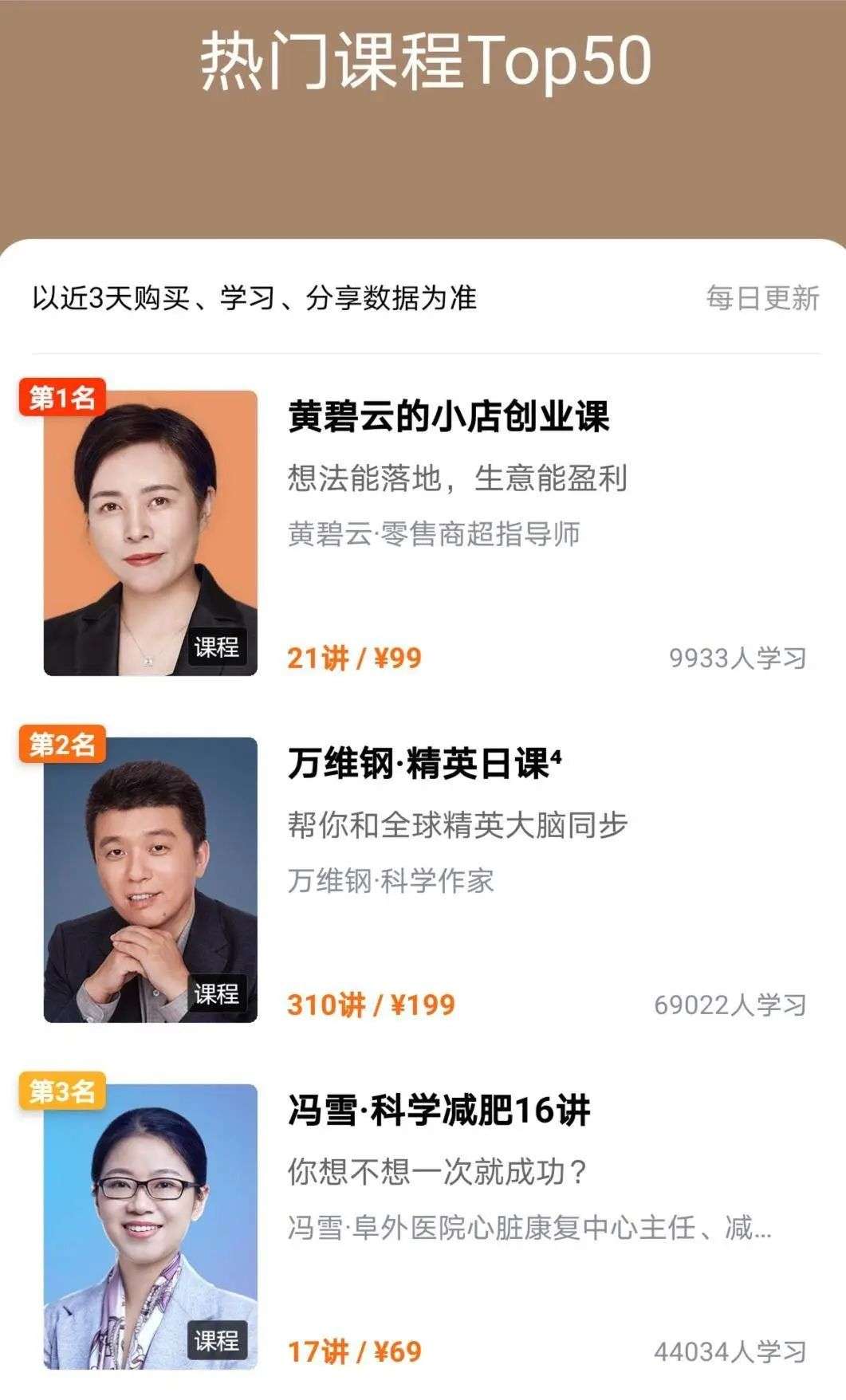 2019年,就曾有一堂名为《黄碧云的小店创业课》的课上线后,登上得到App热门课程榜首。这堂课的“价值”就是包含了很多解决实际问题的案例。