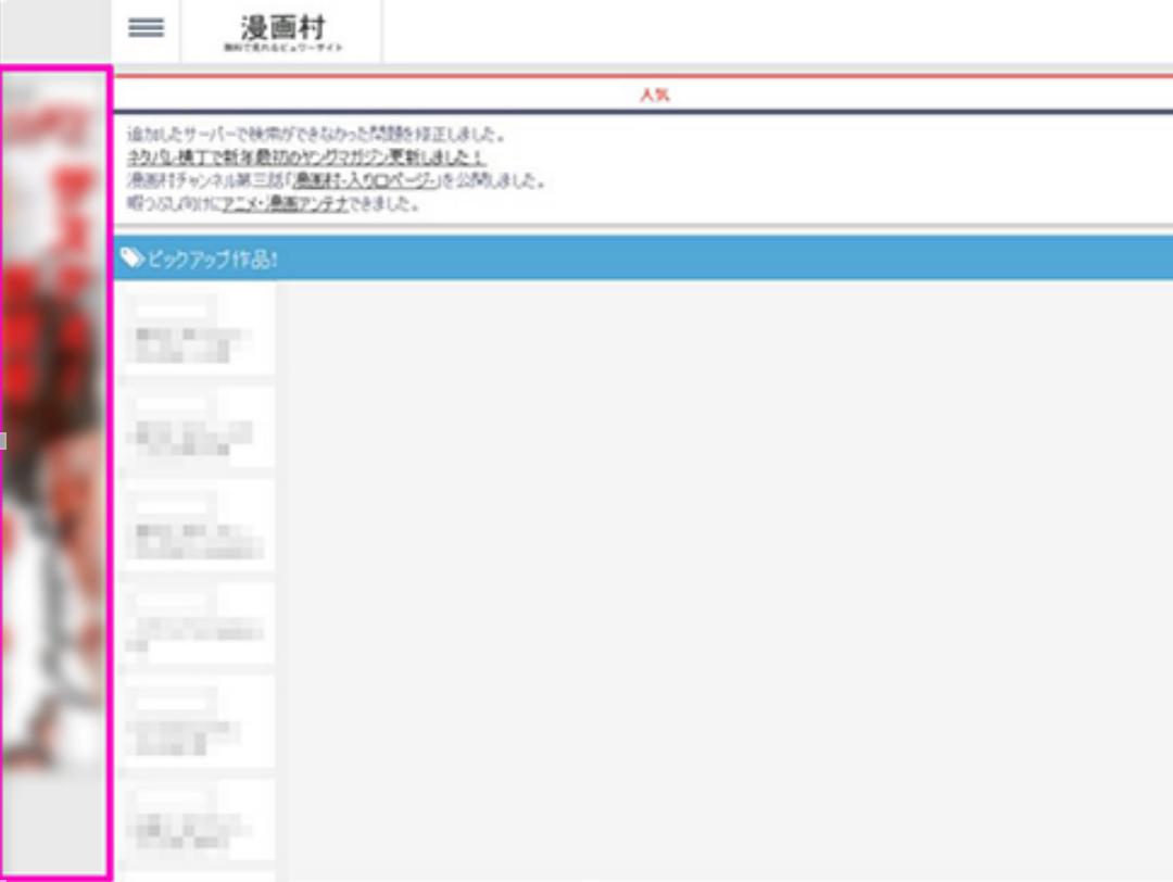 “漫画村”网站,左侧区域为A社制作广告
