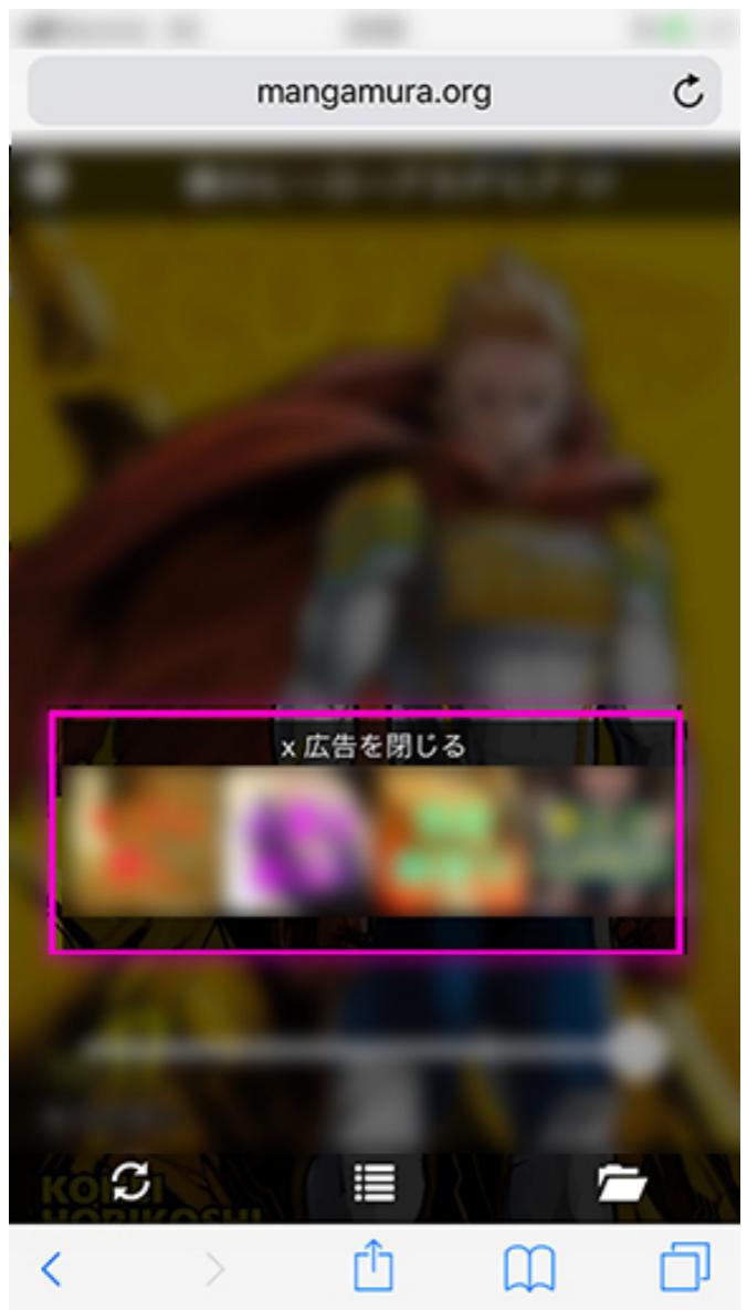 “漫画村”网站,图中方框区域为广告