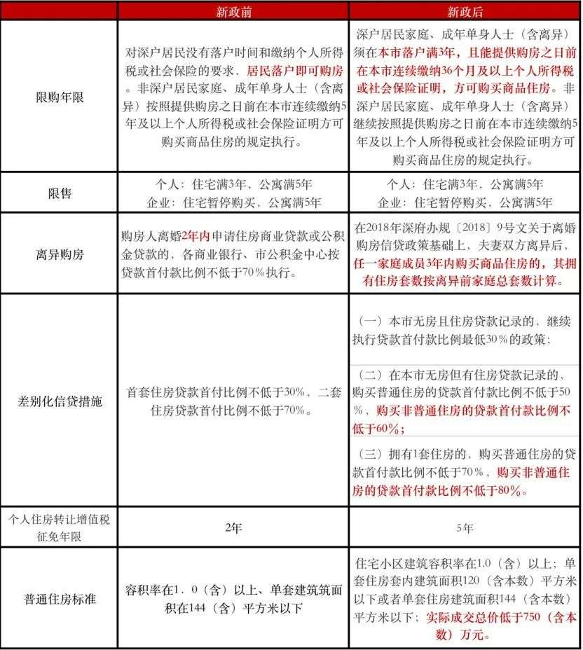 2020年深圳楼市调控政策前后对比