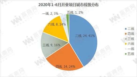 从城市线级分布看,上半年开业项目超四成集中在二线城市,共24个项目,其中成都、佛山、重庆、太原各有3个项目,郑州2个项目。
