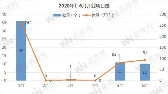 6月,购物中心开业数据仍然低迷,仅10个项目开业,总体量93万平方米。
