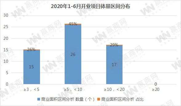 从上半年开业项目体量看,5~10万平方米(不含10万平方米)的中体量商业项目仍然是主流,长时间以来占比在四成左右,上半年占比45%与去年同期相比有小幅增长。