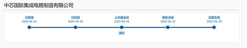 从6月1日递交申请书,3日后进行首轮IPO问询,15天后通过上市委会议,3天后提交注册,7天后注册生效。中芯国际的科创板上市历程,仅耗费了29天,就创下我国A股市场十年以来最快上市速度。