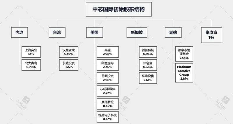 ▲中芯国际初始股东结构示意图(数据来源于网络)
