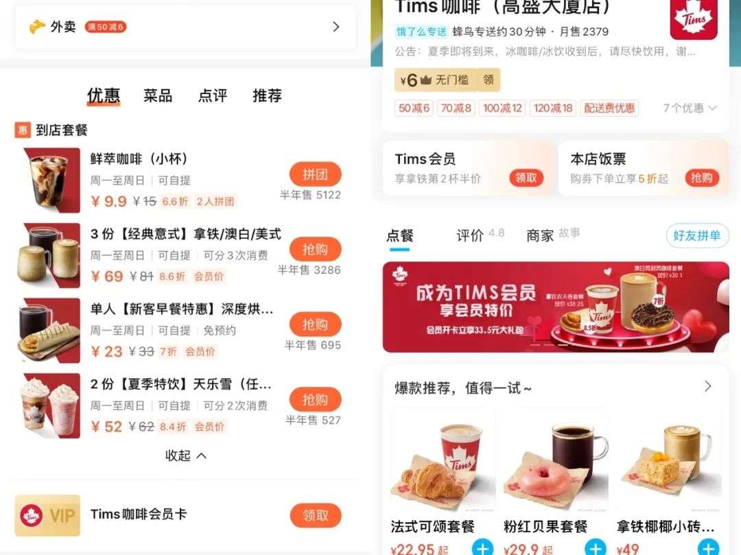 在加拿大,Tims咖啡的门店密集分布在加油站、机场、社区,多数是24小时营业,咖啡触手可得,即买即走。但在中国,Tims的外卖业务直接选择了与饿了么美团合作,减少自营的比重。