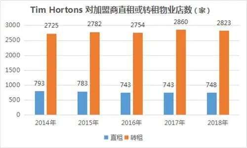 很有趣的一点是,在加拿大的Tims咖啡是靠着收租作为主要盈利点。凭借着强势的品牌能力,Tims通过长期承租、定死租约等方式低价获得门面,然后转租给加盟商,做个轻轻松松的收租“二房东”。
