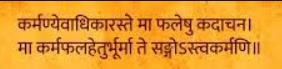 "你只有工作的权利,但成果不属于你。不要仅仅把结果当成你的动机,也不要让你的依恋变得无所作为。"(就是“但行好事,莫问前程”的意思吧)
