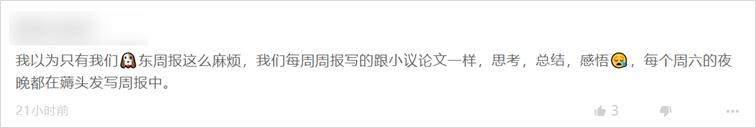京东员工说自己的周报就跟小议论文一样,每个周六都要为写周报秃头。