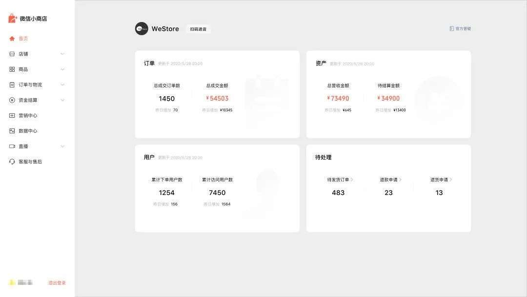 小商店为商家提供了商品信息发布、订单与物流、自建结算、营销中心、数据中心、直播、客服与售后等电商常用的经营场景功能。