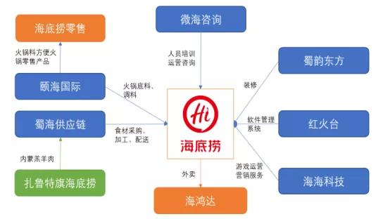蜀海(北京)供应链管理有限责任公司成立于2011年6月,是海底捞对食材供应链最重要的布局。2018年,蜀海交易额约50亿元。