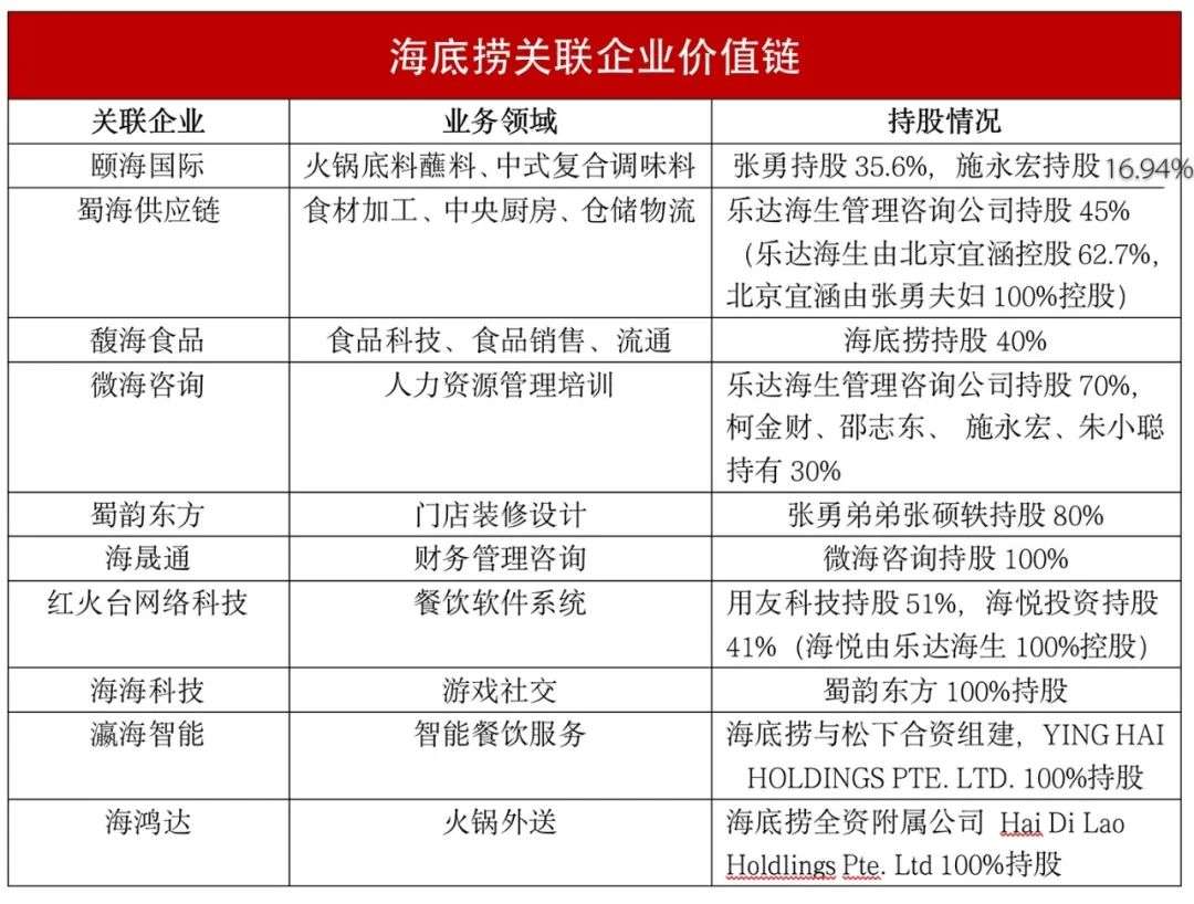 蜀海供应链是静远投资的间接非全资附属公司,而静远投资是颐海国际董事长苟轶群,苟还是蜀海供应链公司董事长(苟佚群1999年加入海底捞,高管占股仅次于杨利娟)。