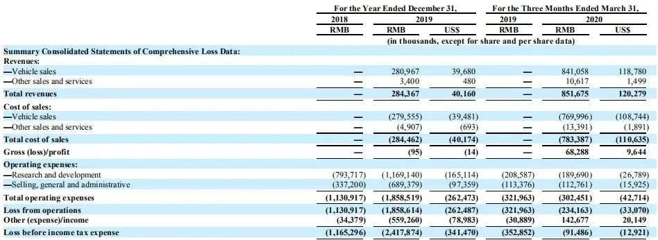 「子弹财经」从招股书中看到,理想汽车目前尚未盈利,其经营亏损2018年为11.31亿元;2019年亏损进一步扩大为18.89亿元(约合2.62亿美金);2020年Q1亏损为2.34亿元人民币(约合3310万美元),较去年同期有所收窄。