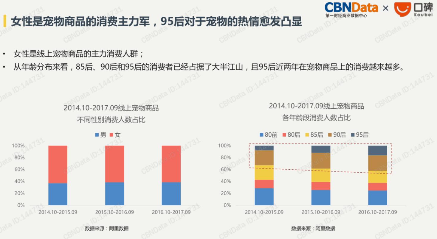 从CBNData《2018生活消费趋势报告》可以看出,90后、95后线上宠物商品消费已经占据整体线上宠物消费的半壁江山。