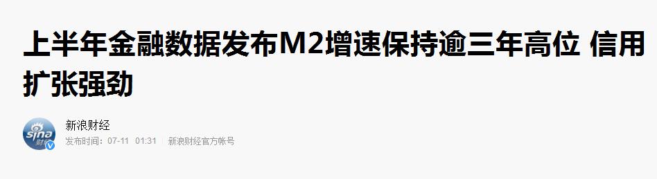 从央行公布的最新数据来看,截至6月末,社会融资规模存量同比增长12.8%,高于3月末水平。广义货币(M2)增速同比增长11.1%,实现连续四个月双位数增长。人民币贷款余额同比增长13.2%,增速与上月末持平,比上年同期高0.2个百分点。