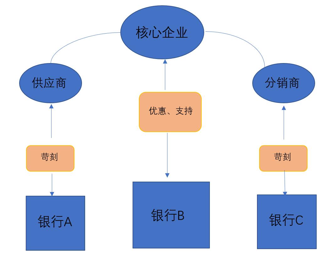 核心企业是关键。(1)商业银行通过核心企业,将服务对象拓展到核心 企业上下游的中小企业,拓展了客户数量,打开了业务空间,优化信贷结构和盈利模式,并解决了一部分中小企业信贷难的问题。(2)核心企业要有完善的供应链管理体系。对上下游企业建立准入和退出机制,完 善奖惩制度,强化与上下游企业的合作关系和信任感。