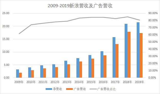 2019年新浪年报显示,新浪总营收为21.63亿美元。其中,20%来自门户业务,仅为4.23亿美元,剩余80%主要来自微博,为17.67亿美元。