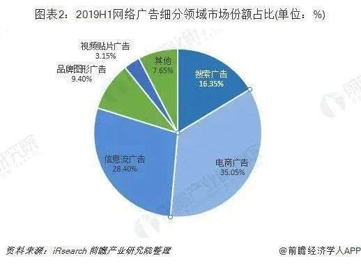 秒针系统数据显示,2017-2019年中国互联网广告流量屏端构成中,PC端的占比逐年减少,由2017年的27.4%减少到2019年的14.6%。前瞻产业研究院数据显示,2019上半年,电商广告是整个网络广告市场中份额最多的领域,而门户网站文字与贴片广告仅被包含在其他的7.56%中。