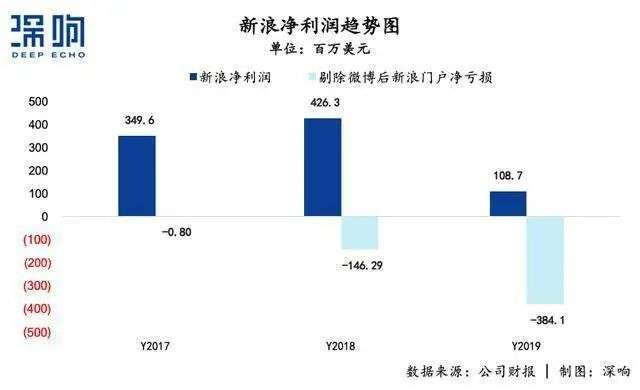 而且,自2017年起,新浪净利润中剔除新浪微博后新浪门户净亏损持续扩大,从2017年的亏损80万扩大到3.841亿元。