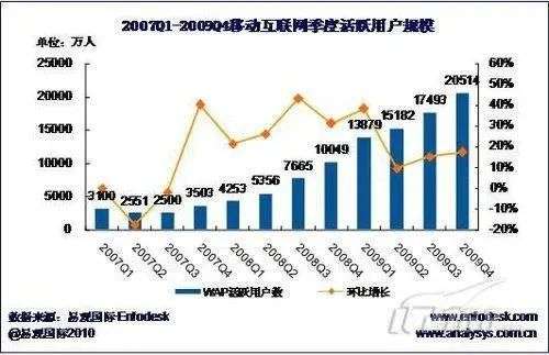 至2009年,3G牌照发放,移动端用户数量出现明显的增长,易观国际发布的《2009年第4季度中国移动互联网市场季度监测》数据显示,2009年第4季度中国移动互联网用户规模达2.05亿人。相比八年前翻了将近10倍。