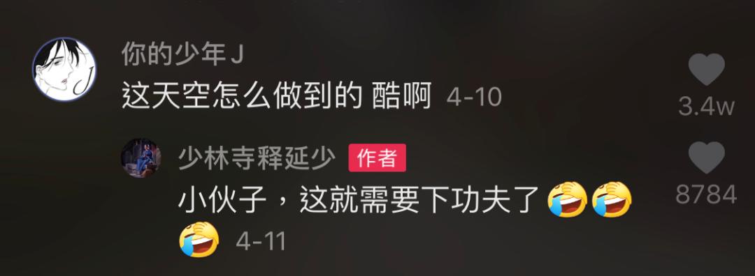 并且,有别于以往人们对出家人不闻世事的印象,少林武僧还会“调皮”地在抖音的评论区内,与网友进行有趣的互动,拉进与公众的距离。而有的时候,他们也会开直播,和网友互动,讲述佛法和自己的寺院生活。