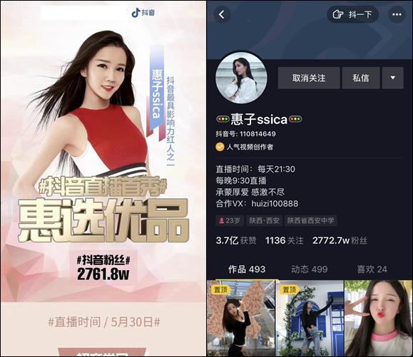 以惠子为例,今年5月29日,抖音粉丝超过2000万的头部主播惠子,开启了她的电商之旅。