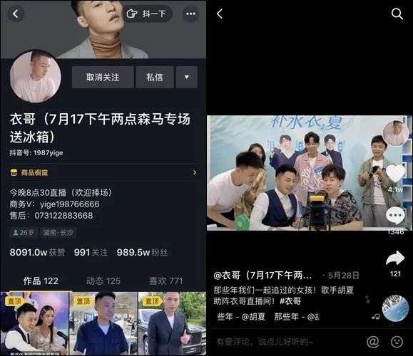 做直播带货不仅给衣哥带来了不错的销售额和声量,他的粉丝也从入局直播电商的500万体量,上升到989.6万。
